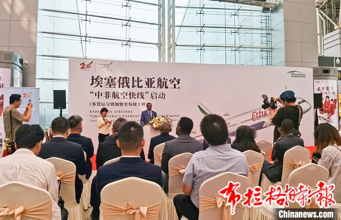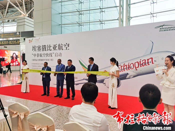 “中非航空快线”启动暨埃塞俄比亚航空(以下简称“埃塞航空”)广州至亚的斯亚贝巴开航20周年庆祝活动26日在广州举行。即日起,由埃塞航空运营的广州至亚的斯亚贝巴航线客、货运航班分别由每周7班加密至每周10班,标志着“中非航空快线”正式启动。